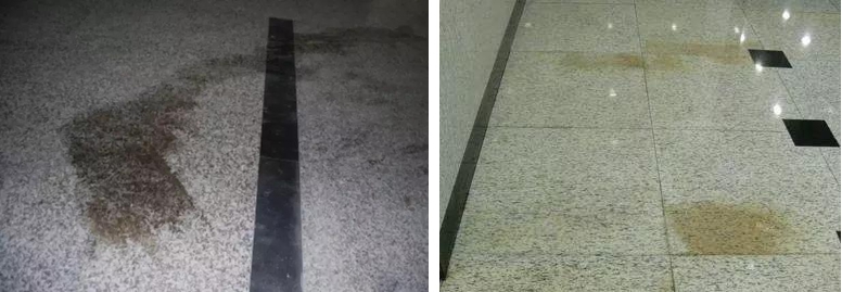 发布者:未知 发布时间:2021-04-07 15:55:47做地面石材保养的时候,通常会遇到各种各样的问题,油斑就是其中问题之一。那么什么是油斑,石材上的油斑是怎么形成的,我们来做个简单的介绍。